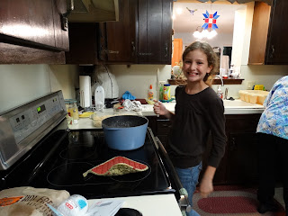After visiting for a while, we all loaded up in two cars and went to the restaurant that Barbara's mother owns, and had supper. The family eats there often so the children knew what they wanted and ate every bite in sight. From there we came to my house and while the children played, I made Rice Krispie treats with our oldest granddaughter, and we all had some before we had the kids clean up the toys. After the treats, I helped take everyone back to Mom's house to spend the night. While at our house, our middle granddaughter sewed, the oldest one got loving comfort from her aunt after stubbing a couple of toes, and the three little ones stayed in the play rooms.